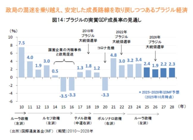 一方、2026年は10月に予定されるブラジル大統領選挙が市場の最大の焦点になりそうです。